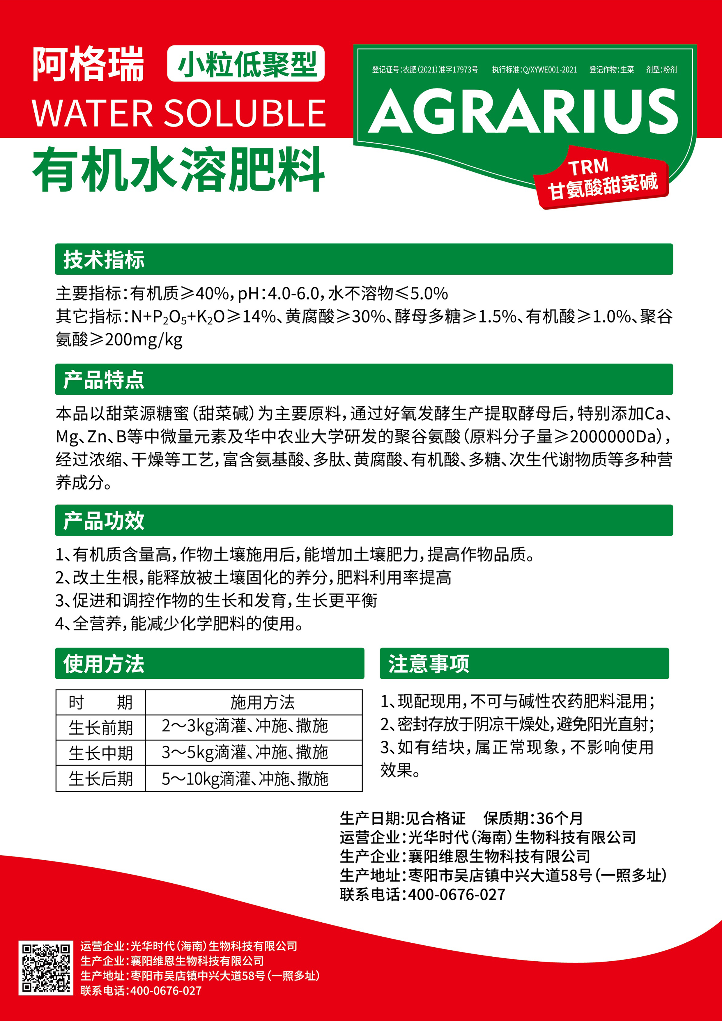 阿格瑞(AGRARIUS)小粒低聚型 有机水溶肥料